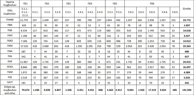 Η νέα κατανομή συμβουλών ανά είδος και Περιφέρεια έχει ως εξής: