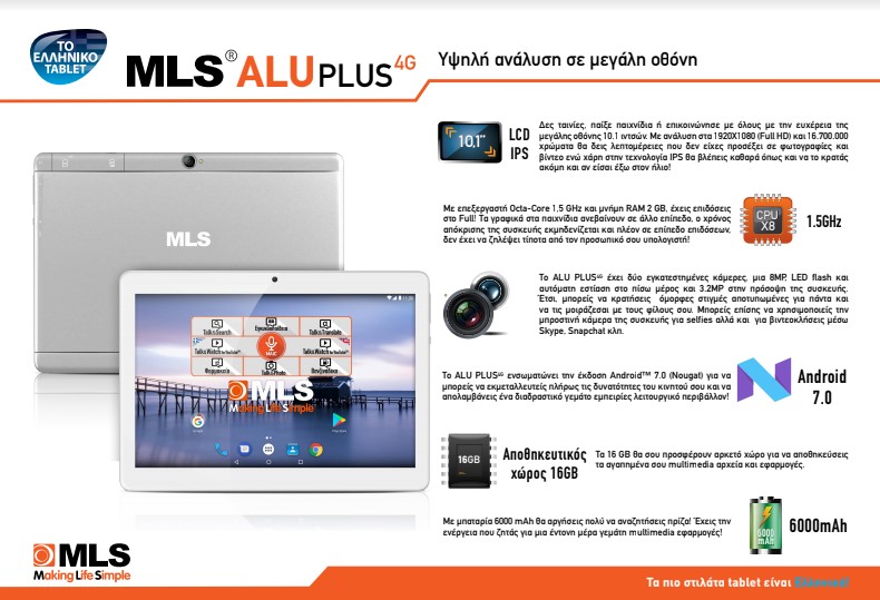Όροι συμμετοχής στην προσφορά: Κάντε like ή κοινοποίηση πάνω στην ανάρτηση του διαγωνισμού, ώστε να μπείτε στην κλήρωση και να διεκδικήσετε το: MLS ALU PLUS 4G