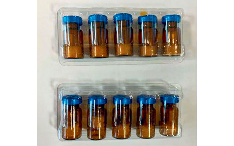 Φιαλίδια με τα σκευάσματα που χορηγούσε ο ψευτογιατρός στους ασθενείς με σκλήρυνση κατά πλάκας, αντί της θεραπευτικής αγωγής που λάμβαναν. Πέντε από αυτούς έχουν πεθάνει…