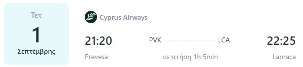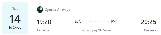 Νέα σύνδεση της Cyprus Airways από τη Λάρνακα προς το Άκτιο για το 2021