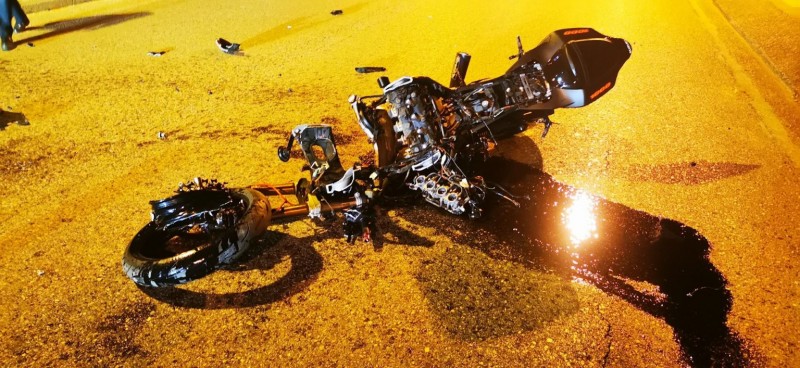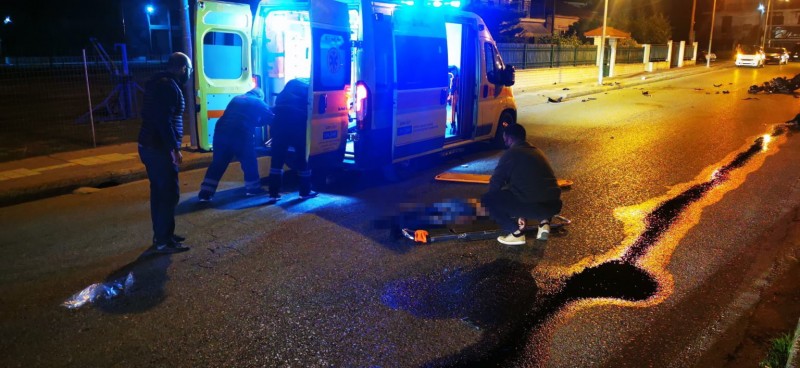 Μια μοτοσικλέτα μεγάλου κυβισμού με επιβαίνοντες δύο νεαρά άτομα, μια κοπέλα 23χρονων και έναν άντρα 30χρονων, εξετράπη της πορείας της και προσέκρουσε σε κολώνα στο ρεύμα εξόδου.