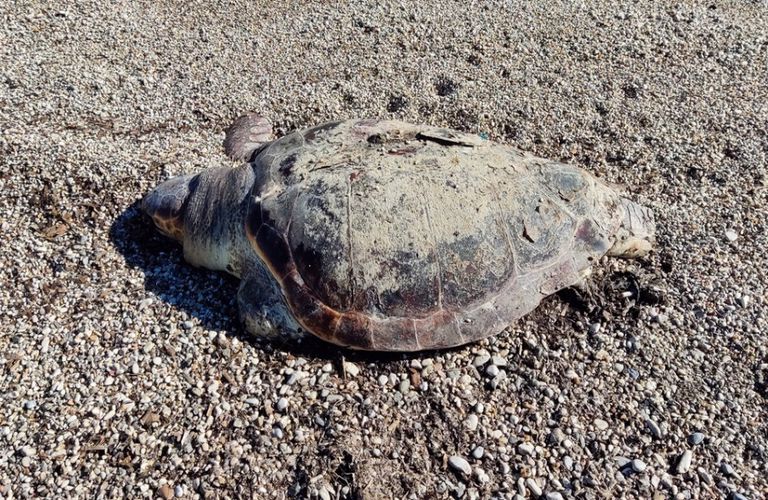 Νέκρη χελώνα Καρέτα – Καρέτα στη Παραλία του Λιμανιού του Μύτικα.