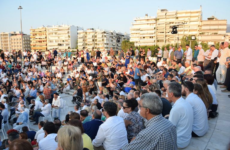 Η εκδήλωση, που παράλληλα ήταν και η εναρκτήρια ενόψει των Περιφερειακών Εκλογών του Οκτωβρίου, πραγματοποιήθηκε στον κατάμεστο χώρο της μαρίνας της Πάτρας, με «μέτωπο» προς τον Πατραϊκό Κόλπο και το Ιόνιο, αλλά και φόντο τον Κορινθιακό Κόλπο, δηλαδή τους ορίζοντες που εμπερικλείουν τη Δυτική Ελλάδα στο σύνολό της.