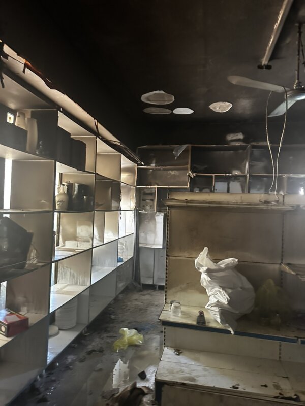 Η φωτιά προκάλεσε ανυπολόγιστες ζημιές, αφανίζοντας το σύνολο των εμπορευμάτων και αφήνοντας το κτίριο σοβαρά επιβαρυμένο.