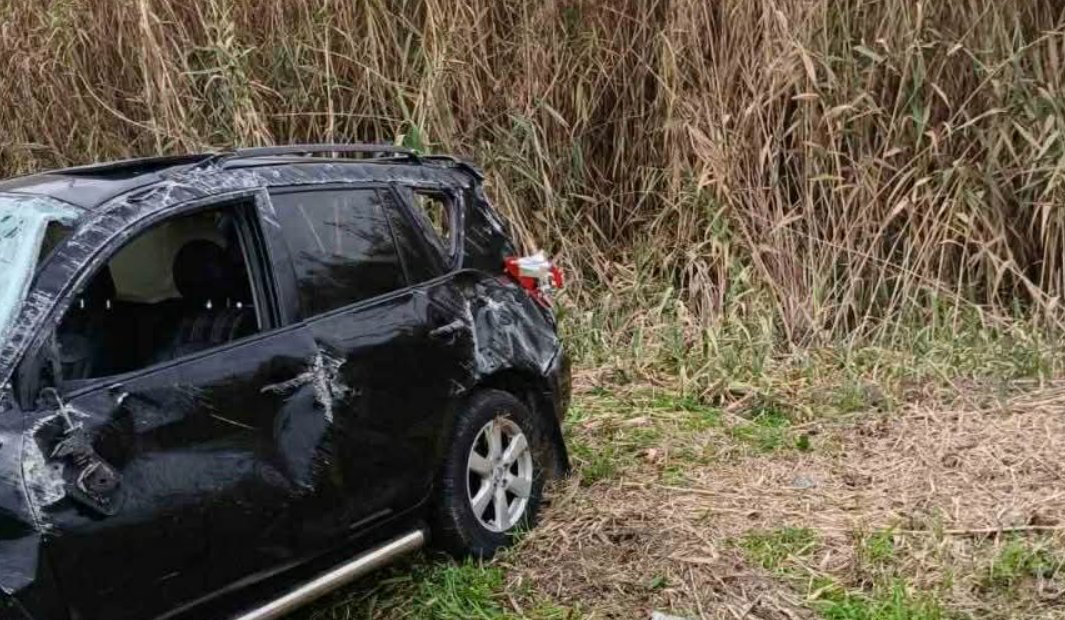 Ήταν μάλιστα τόσο σφοδρή που το Ι.Χ. «απογειώθηκε» και κατέληξε εκτός οδοστρώματος, μέσα σε καλαμιές, σε παρακείμενο χωράφι.