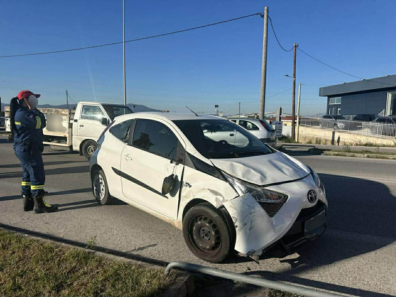 Οι ίδιες πληροφορίες λένε ό,τι η σύγκρουση σημειώθηκε όταν άλλο όχημα έβγαινε από επιχείρηση, με αποτέλεσμα το αυτοκίνητό της να εκσφενδονιστεί στην Εθνική Οδό και να ανατραπεί.