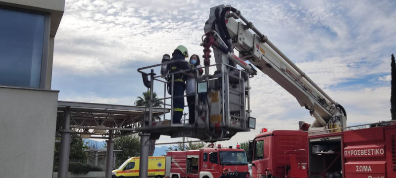 Το σενάριο της άσκησης για την περίπτωση σεισμού προέβλεπε πως ένα μέρος του κτιρίου του Νοσοκομείου έπεσε και είχε τυλιχθεί στις φλόγες!