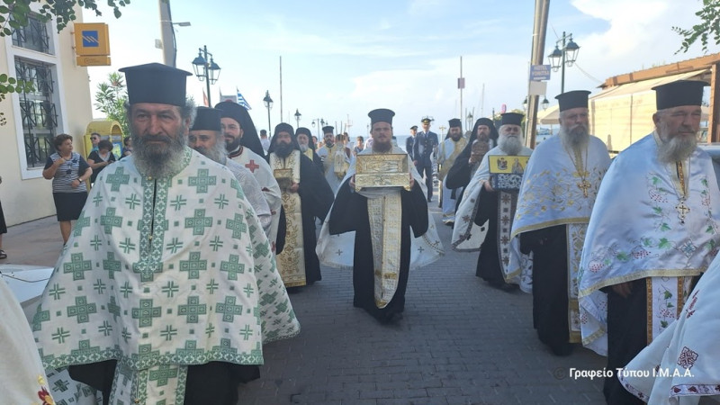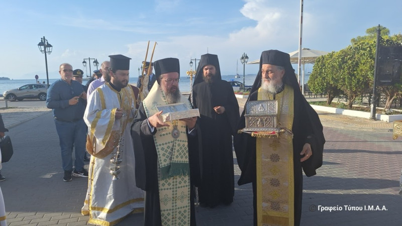 Νωρίς το απόγευμα ο Σεβασμιότατος Μητροπολίτης Αιτωλίας και Ακαρνανίας κ.κ. Δαμασκηνός, επικεφαλής του Ιερού Κλήρου, των Αρχόντων και του πιστού Λαού, υποδέχθηκε τα ιερά Λείψανα των Αιτωλοακαρνάνων Αγίων που μεταφέρθηκαν από τους Ιερούς Ναούς και τις Ιερές Μονές της Ιεράς Μητροπόλεως οπού φυλάσσονται μόνιμα.