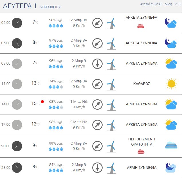 Η θερμοκρασία θα κυμανθεί από 11 έως 17-18 βαθμούς.