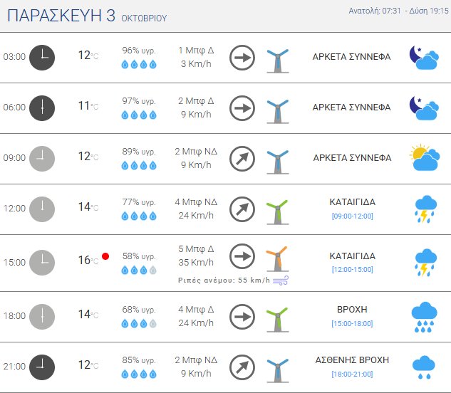 Την Παρασκευή, 3 Οκτωβρίου 2025 αναμένονται βροχές και καταιγίδες, κατά τόπους ισχυρές.