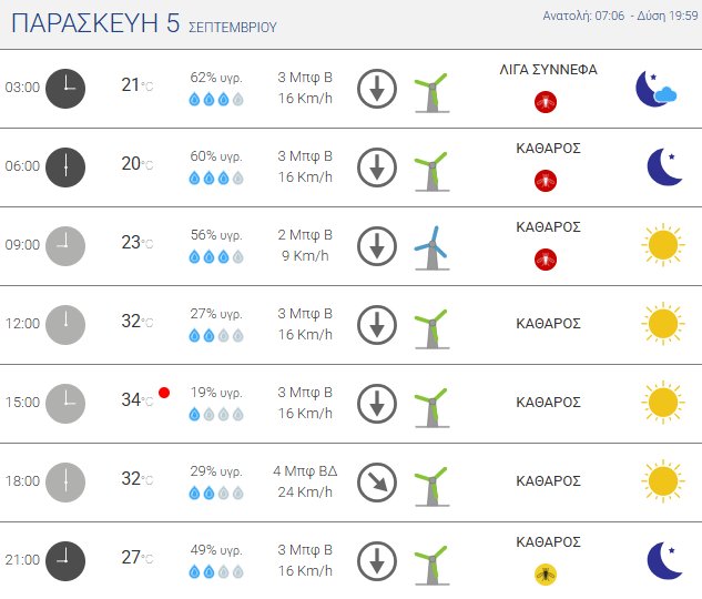 Την Παρασκευή, 5 Σεπτεμβρίου 2025 αναμένεται γενικά αίθριος καιρός. Υψηλές για την εποχή θερμοκρασίες στα βόρεια. Άνεμοι έως 6 μποφόρ στο Αιγαίο.