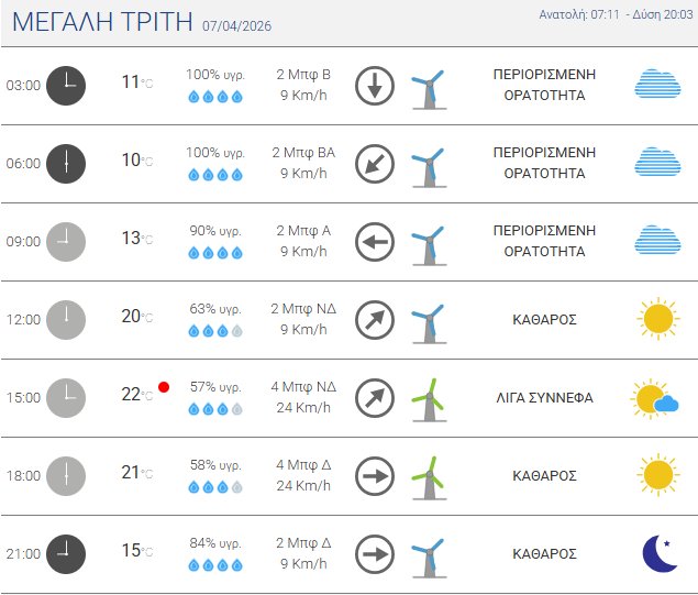 Τη Μεγάλη Τρίτη, 07 Απριλίου 2026 αναμένεται ηλιοφάνεια τη Μεγάλη Τρίτη στο Αγρίνιο και η θερμοκρασία έως τους 22 βαθμούς Κελσίου!