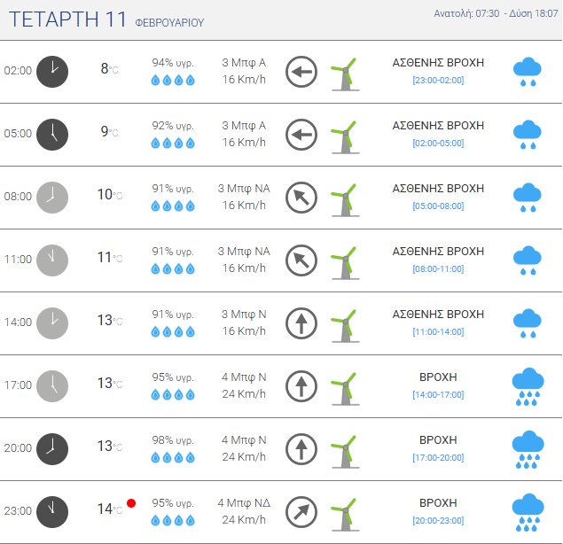Πιο αναλυτικά, την Τετάρτη, 11 Φεβρουαρίου 2026 αναμένονται αρχικά νεφώσεις με τοπικές βροχές. Σταδιακά μετά τις απογευματινές ώρες και από τα δυτικά οι βροχές αναμένεται να ενταθούν ενώ θα σημειωθούν και τοπικές καταιγίδες.
