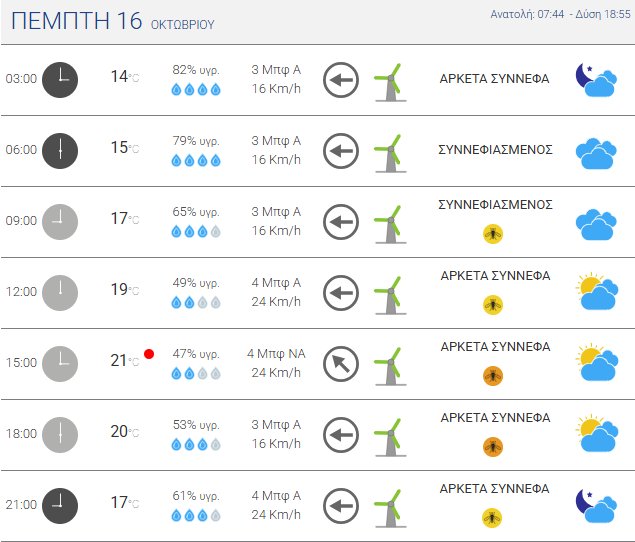 Την Πέμπτη, 16 Οκτωβρίου 2025 αναμένεται αραιή συννεφιά στο Αγρίνιο και η θερμοκρασία θα αγγίξει τους 21 βαθμούς Κελσίου!