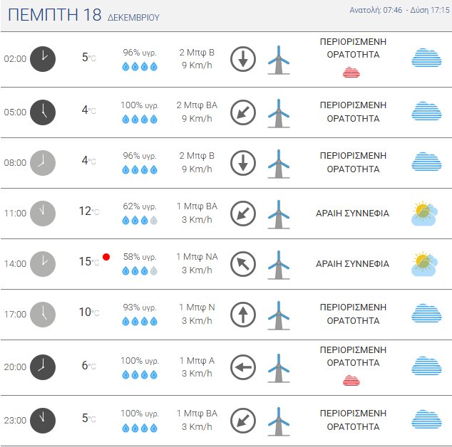 Τη νύχτα και νωρίς το πρωί η ορατότητα θα είναι περιορισμένη και είναι πιθανό να σχηματιστούν ομίχλες.