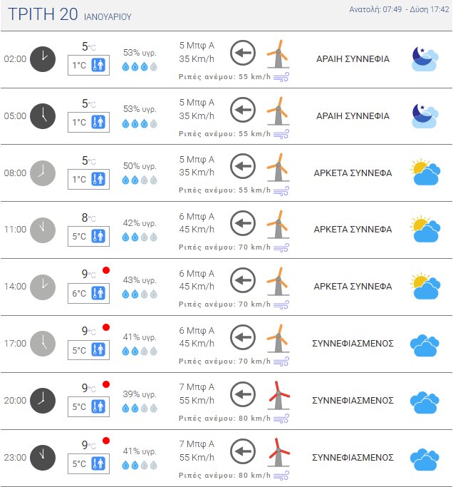 Στα Ανατολικά Ανατολικοί Βορειοανατολικοί 4 με 6, στο Νότιο Αιγαίο και το Λιβυκό Πέλαγος 7-8 μποφόρ.