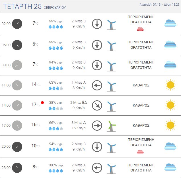 Την Τετάρτη, 25 Φεβρουαρίου 2026 αναμένεται γενικά αίθριος καιρός.