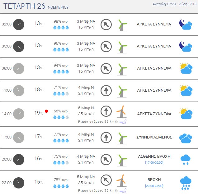 Πιο αναλυτικά, την Τετάρτη, 26 Νοεμβρίου 2025, αρχικά ισχυρές βροχές και καταιγίδες θα εκδηλώνονται από την αρχή της ημέρας στην Κέρκυρα, στους Παξούς και σε περιοχές της Ηπείρου. Προοδευτικά τα φαινόμενα θα επεκταθούν στο σύνολο της δυτικής χώρας και σε περιοχές της Ανατολικής Μακεδονίας και της Θράκης.