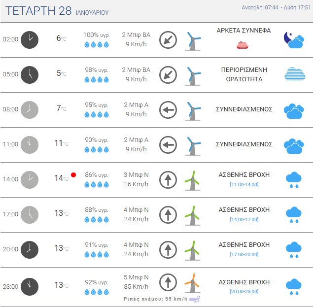 Την Τετάρτη, 28 Ιανουαρίου 2026 αναμένονται βροχές κατά τόπους από το μεσημέρι.