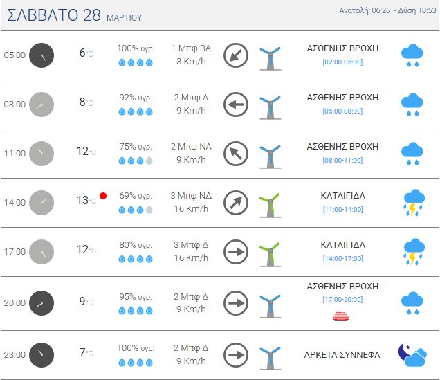 Πιο αναλυτικά, το Σάββατο, 28 Μαρτίου 2026 σε ολόκληρη τη χώρα θα επικρατήσει άστατος καιρός και θα εκδηλωθούν βροχές και σποραδικές καταιγίδες. Τα φαινόμενα εντονότερα και πιο γενικευμένα τις μεσημεριανές και απογευματινές ώρες. Υπαρκτή είναι η πιθανότητα για εκδήλωση λίγων τοπικών χαλαζοπτώσεων. Λίγα χιόνια θα πέσουν σε ορεινά τμήματα της ηπειρωτικής χώρας. Αυξημένες θα διατηρηθούν οι συγκεντρώσεις Αφρικανικής σκόνης στην Ανατολική Κρήτη και στα Δωδεκάνησα.