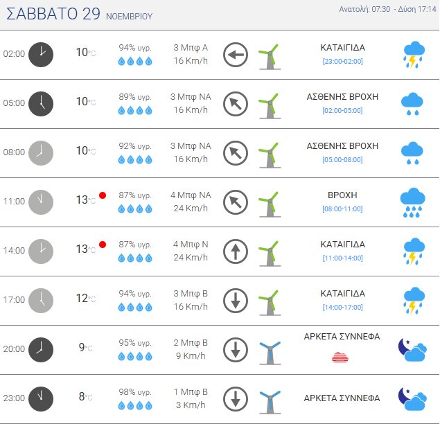 Πιο αναλυτικά, το Σάββατο, 29 Νοεμβρίου 2025 ισχυρές βροχές και καταιγίδες αναμένονται στην Κεντρική και Ανατολική Μακεδονία, στη Θράκη και στα νησιά του Βορείου Αιγαίου, με βελτίωση μετά το μεσημέρι.