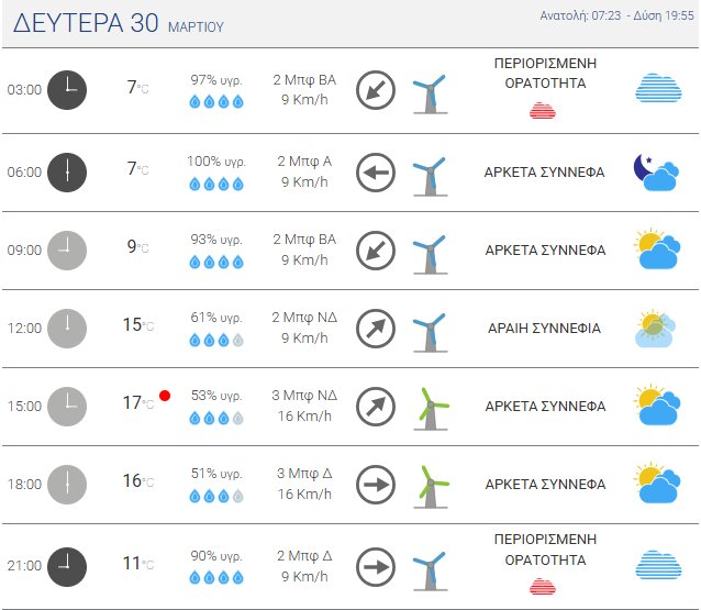 Πιο αναλυτικά, τη Δευτέρα, 30 Μαρτίου 2026 αναμένεται βελτιωμένος καιρός, με λίγες νεφώσεις, που τοπικά θα είναι κατά περιόδους αυξημένες. Τις θερμές ώρες της ημέρας είναι πιθανό να εκδηλωθούν μεμονωμένοι όμβροι σε ηπειρωτικές περιοχές και στα ορεινά της Κρήτης.