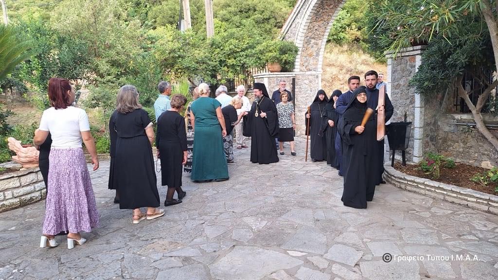 Ο Σεβασμιότατος χοροστάτησε στην Ακολουθία του Όρθρου και τη Θεία Λειτουργία που τελέσθηκαν για την Εορτή της Αγίας Μακρίνας, της οποίας το όνομα φέρει η Καθηγουμένη της Ιεράς Μονής, Γερόντισσα Μακρίνα.