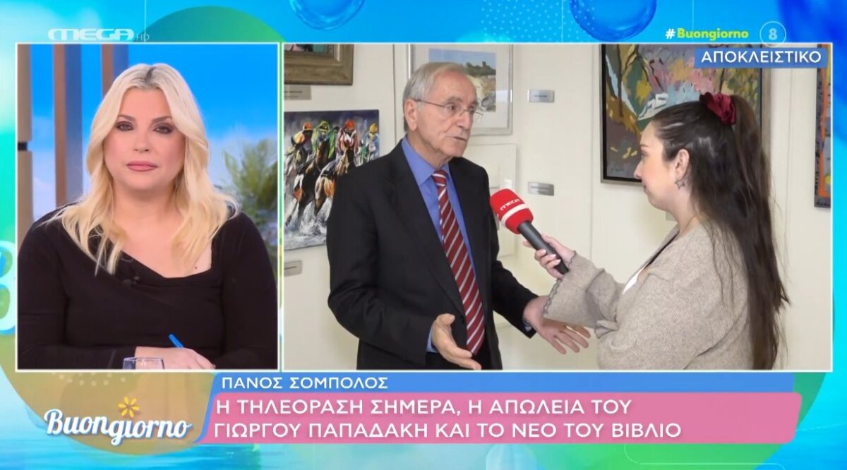 Ο Πάνος Σόμπολος από το χωριό Καραϊσκάκης του Αστακού μίλησε το πρωί της Δευτέρας (12/01) στο «Buongiorno» της Φαίης Σκορδά για τον Γιώργο Παπαδάκη και την ελληνική τηλεόραση.