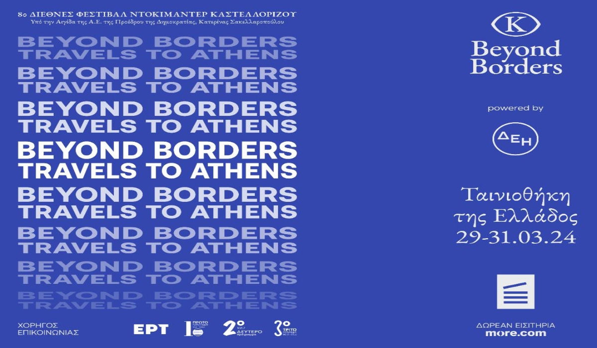 Το Beyond Borders – Διεθνές Φεστιβάλ Ντοκιμαντέρ Καστελλορίζου ετοιμάζεται για την 9η έκδοσή του, 25/8-1/9/2024 στο Καστελλόριζο, στο μεταξύ όμως το μακρινό Καστελλόριζο έρχεται στην Αθήνα. Από τις 29 έως τις 31 Μαρτίου 2024 τα βραβευμένα ντοκιμαντέρ του 8ου Beyond Borders θα προβληθούν στον φιλόξενο χώρο της Ταινιοθήκης της Ελλάδος.