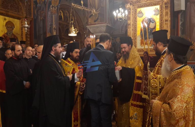 Μετά το τέλος της Ομιλίας του, στην Τελετή Ενθρόνισης του Μητροπολίτη Αιτωλίας και Ακαρνανίας, κ.κ. Δαμασκηνού στο Αγρίνιο, ο Περιφερειάρχης Νεκτάριος Φαρμάκης παρέδωσε κι εκείνος με τη σειρά του στον νέο Ποιμενάρχη μας ένα πολύτιμο δώρο.