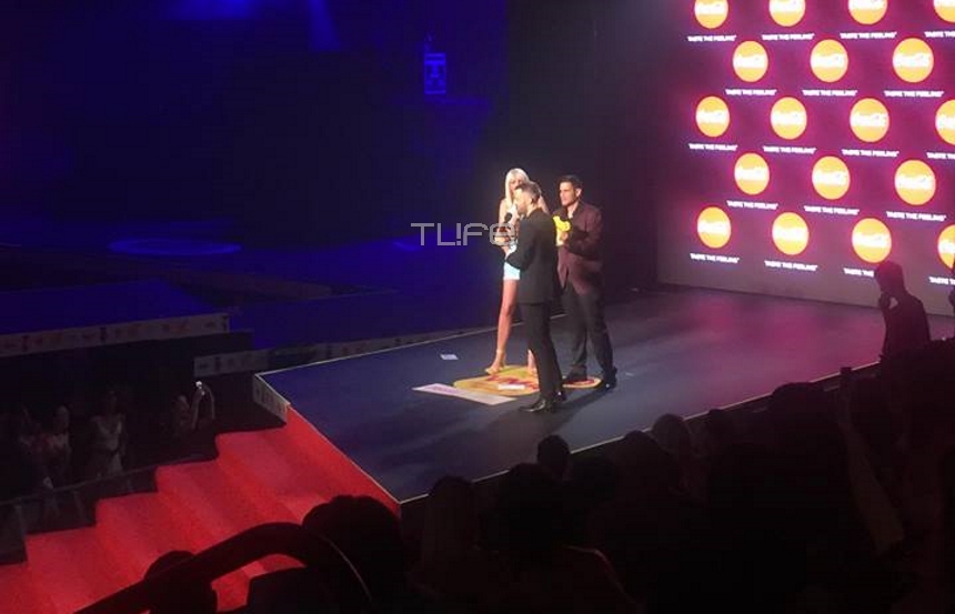 Η εντυπωσιακή Έλενα Παπαρίζου! Ένα τεχνικό λάθος όμως ανέτρεψε τα σχέδια της βραδιάς. H Έλενα ανέβηκε στο stage και ο φωτισμός δεν ήταν σωστός με αποτέλεσμα να ξαναγυριστεί το video.