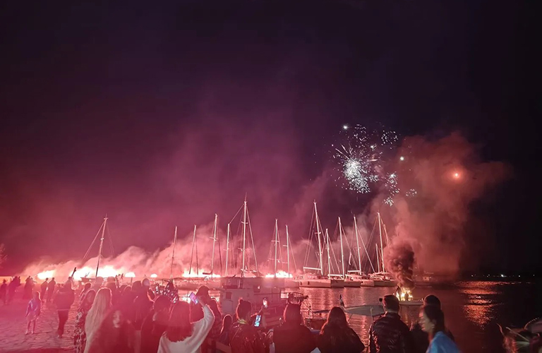Στο τέλος στο λιμάνι της Παλαίρου οι διοργανωτές παρέδωσαν στην πυρά τον βασίλειά καρνάβαλο και πρόσφεραν ένα φαντασμαγορικό θέαμα με βεγγαλικά και καπνογόνα.