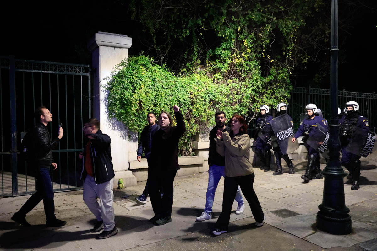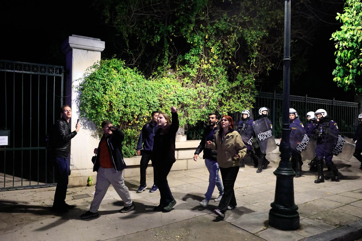 Εξω από το Μέγαρο Μαξίμου έφτασε ομάδα φοιτητών φωνάζοντας συνθήματα κατά των ιδιωτικών πανεπιστημίων, ενώ επιχείρησαν να ανοίξουν πανό.