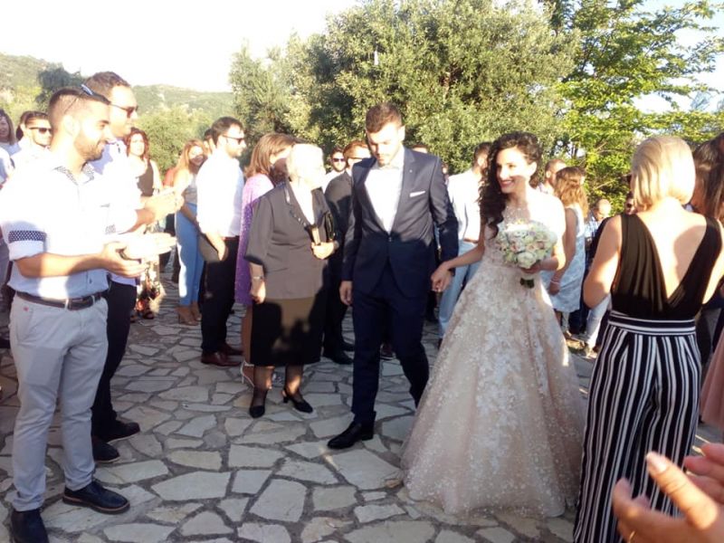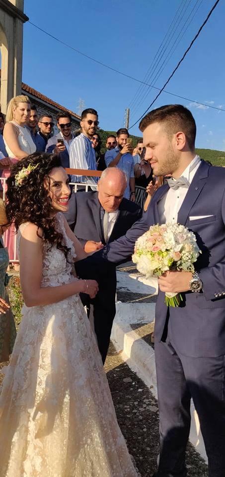 Το μυστήριο διεξήχθη στον Άγιο Ηλία Μυρτιάς και κουμπάρος του ζευγαριού ήταν ο Δημήτρης Μπόκας.
