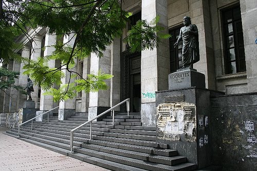 Έξω από τη Εθνική Βιβλιοθήκη του Μοντεβιδέο, δίπλα στην είσοδο, βρίσκεται το άγαλμα του Σωκράτη.