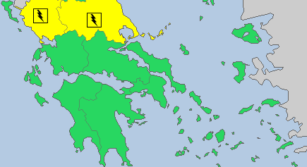 Ισχυρές βροχές και καταιγίδες οι οποίες θα συνοδεύονται από πρόσκαιρα ενισχυμένους ανέμους και πιθανόν χαλαζοπτώσεις θα εκδηλωθούν στο βόρειο Ιόνιο, την Ήπειρο, τη Μακεδονία, τη Θράκη, τη Θεσσαλία, τις Σποράδες, την Εύβοια, το βόρειο Αιγαίο και πιθανόν τη δυτική Στερεά.