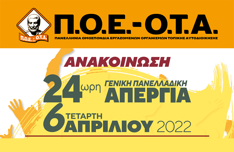 Π.Ο.Ε.-Ο.Τ.Α.-ΑΝΑΚΟΙΝΩΣΗ 24ΩΡΗΣ ΓΕΝΙΚΗΣ ΑΠΕΡΓΙΑΣ (06-04-2022)