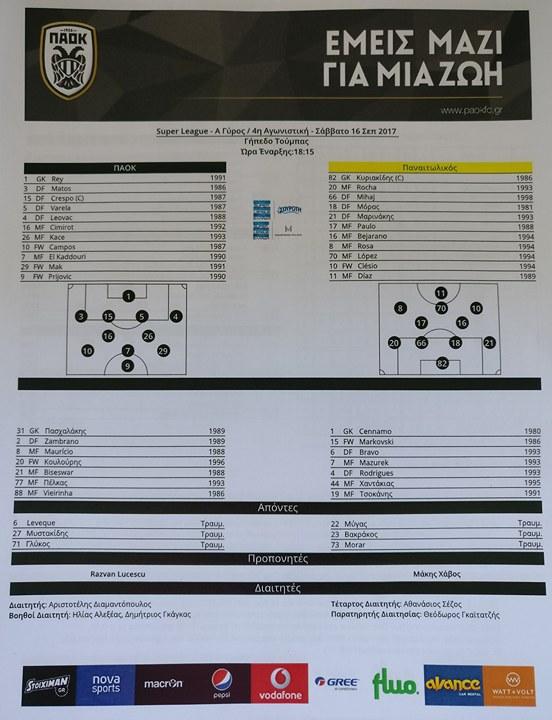 Παναιτωλικός: Κυριακίδης, Μόρας, Μιχάι, Ρότσα, Μαρινάκης, Μάρκος Πάουλο, Μπεχαράνο, Λόπες, Κλέσιο, Ρόσα, Ντίας.