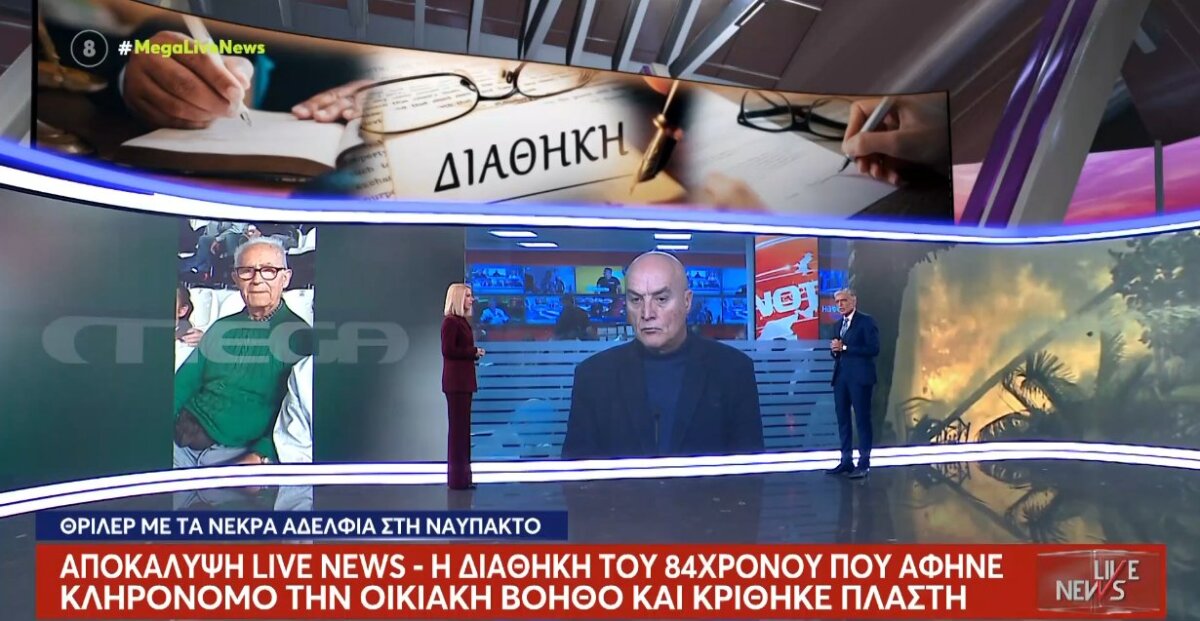 Ο Νίκος Ευαγγελάτος και το «Live News» επικεντρώθηκε στην Παλαιοπαναγιά Ναυπάκτου και αποκάλυψε την 9η Ιανουαρίου 2026 τη διαθήκη του 84χρονου που κρίθηκε πλαστή.