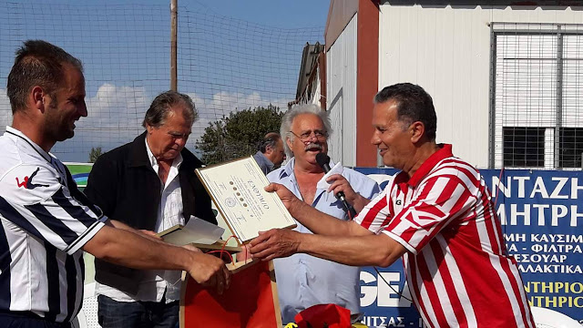 Ενώ οι Παλαίμαχοι του Παναιτωλικού με τον Κώστα Τάκο τίμησαν τον Καλατζη με την Φανέλα του Παναιτωλικού που φορούσε.