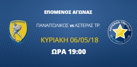 Συντονιστείτε, σήμερα, Κυριακή 06 Μαΐου, στις 19:00 στην αθλητική συχνότητα της Αιτωλοακαρνανίας στους 93,7 στα fm κι ακούστε σε ζωντανή μετάδοση το παιχνίδι Παναιτωλικός – Αστέρας Τρίπολης