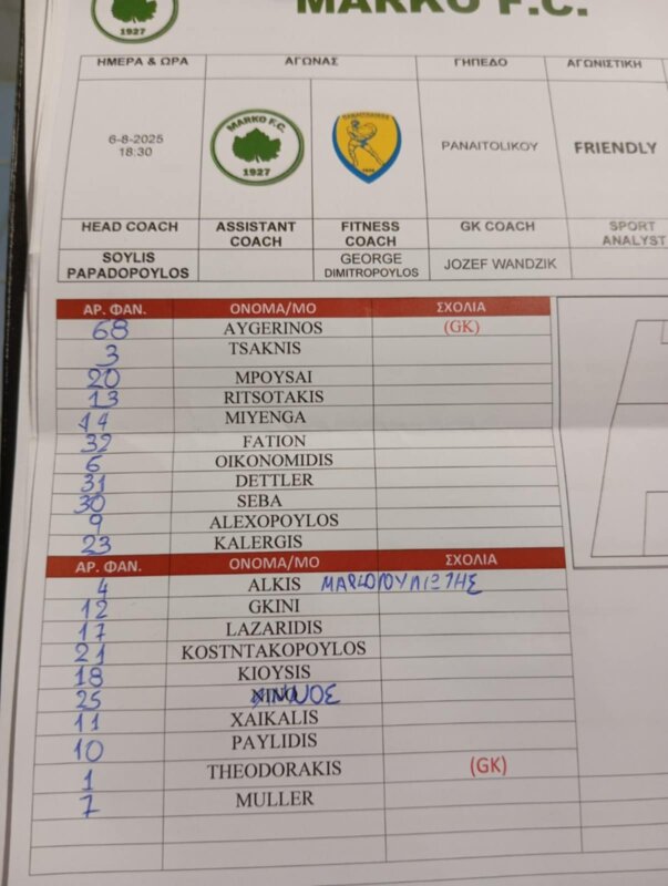 Ο Παναιτωλικός αντιμετωπίζει αρκετές απουσίες στο σημερινό φιλικό με το Μαρκό, κάτι που δίνει την ευκαιρία στον Γιάννη Πετράκη να δοκιμάσει εναλλακτικές λύσεις και να μοιράσει χρόνο συμμετοχής.