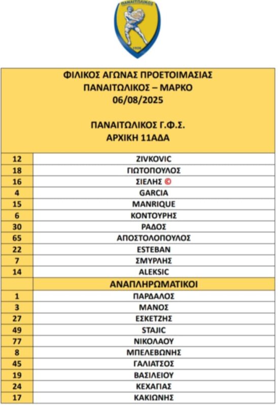 Ο Παναιτωλικός στο πρώτο φιλικό προετοιμασίας στο Γήπεδο της Προυσιωτίσσης θα παραχθεί με πολλές απουσίες απέναντι στο Μαρκό.