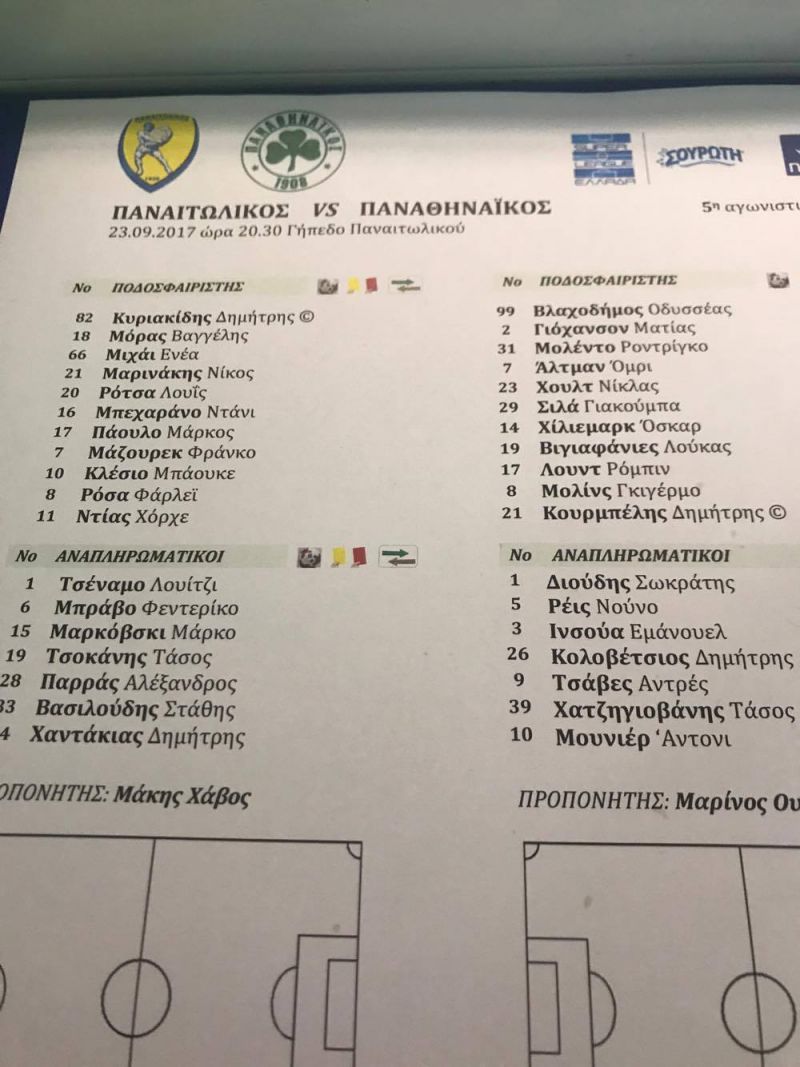 Παναιτωλικός – Παναθηναϊκός: Οι ενδεκάδες των δυο ομάδων (Φωτό)