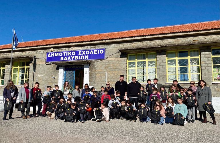 Για τον λόγο αυτό αντιπροσωπεία της Ομάδας παρευρέθηκε σήμερα στο Δημοτικό Σχολείο Καλυβίων και προσέφερε αθλητικό εξοπλισμό και σακίδια της Ομάδας, σε όλους τους μικρούς μαθητές.