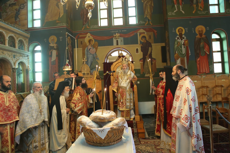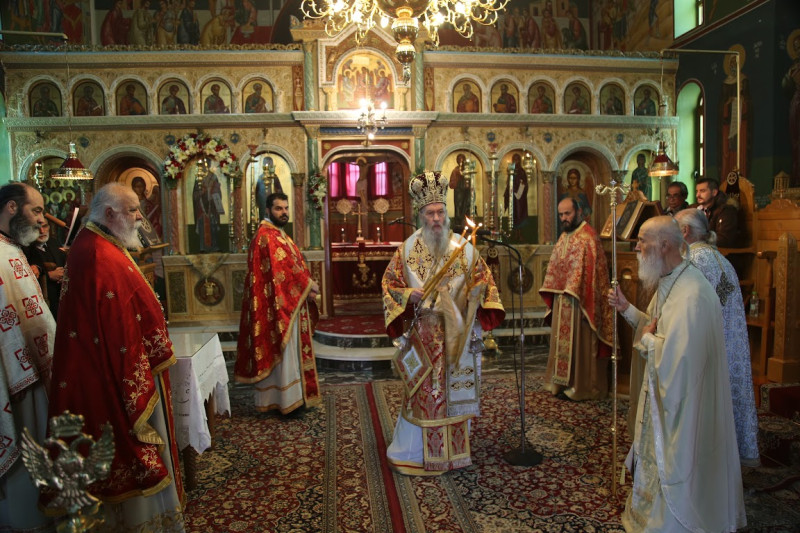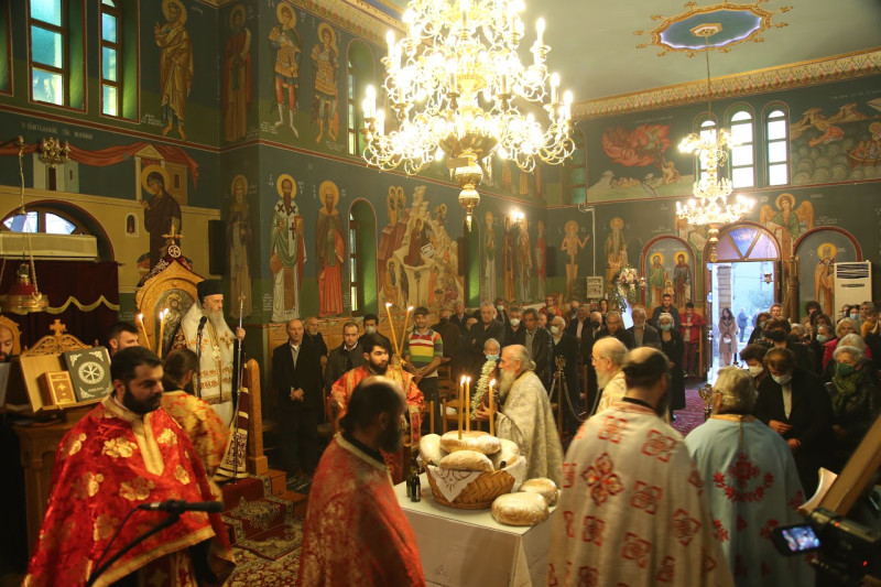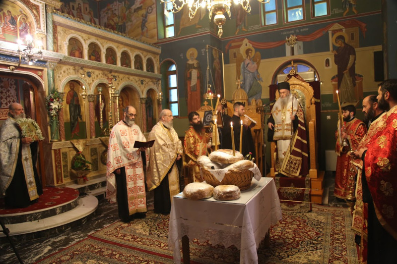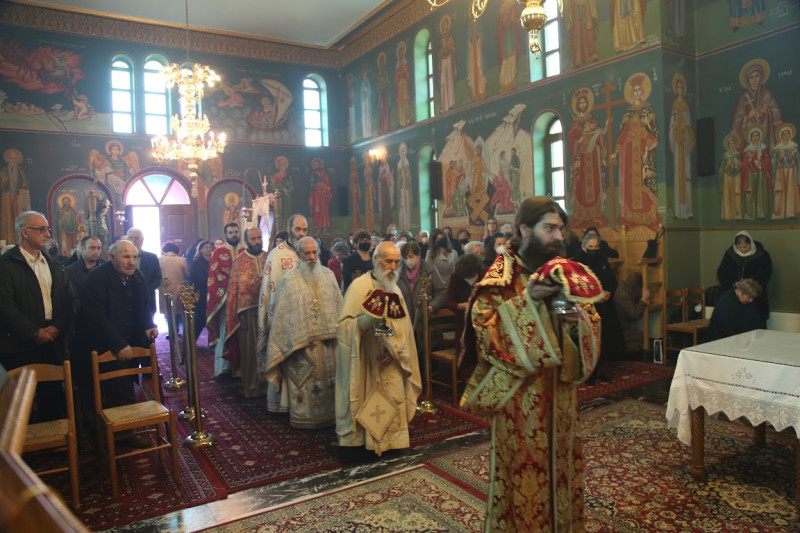 Μαζί του συλλειτούργησαν ὁ Ἀρχιμανδρίτης π. Εἰρηναῖος Κουτσογιάννης, ὁ π. Νικόλαος Δημόπουλος, ὁ π. Χρῆστος Βλάχος, ὁ π. Ἰωάννης Ντζουμάνης, ὁ ἐφημέριος τοῦ Ναοῦ π. Γεώργιος Σαβελώνας καί ὁ Διακόνος Παΐσιος Παρασκευᾶς. Στήν θεία Λειτουργία ἦταν παρόντες πολλοί πιστοί.