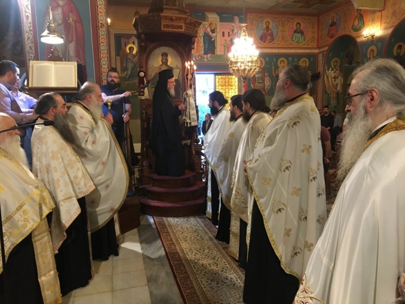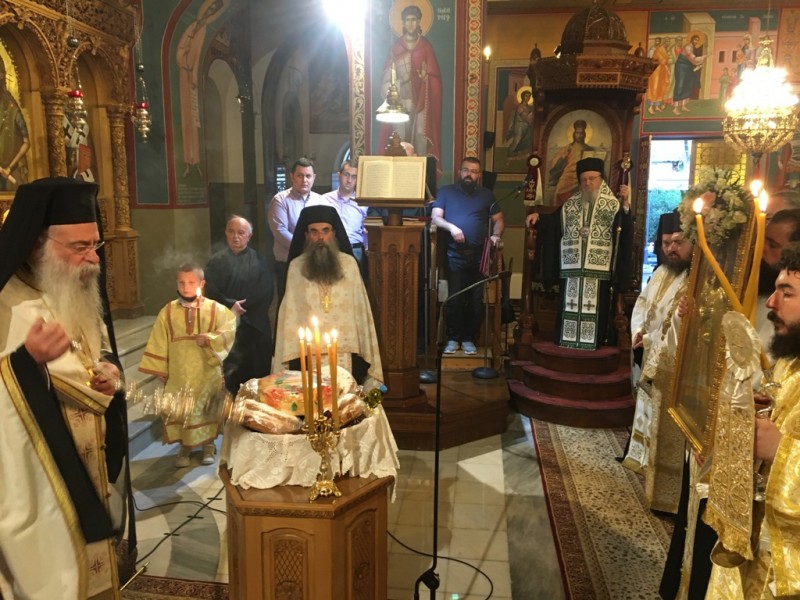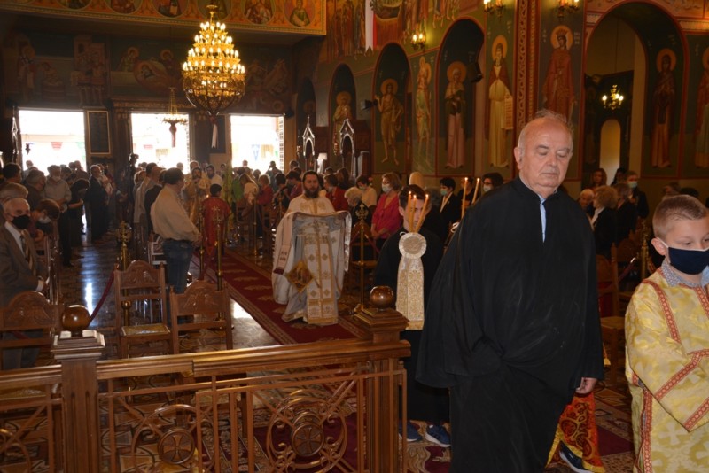 Το απόγευμα του Σαββάτου τελέσθηκε η ακολουθία του πανηγυρικού Εσπερινού, στον νέο περικαλλή Ιερό Ναό, χοροστατούντος του Σεβασμιωτάτου Ποιμενάρχου, Μητροπολίτου Αιτωλίας και Ακαρνανίας κ. Κοσμά.