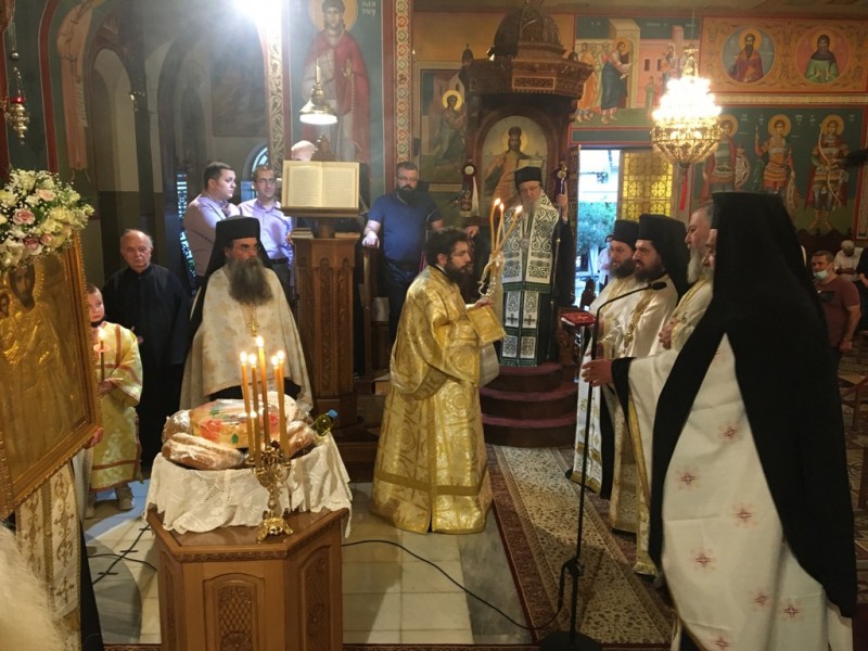 Το απόγευμα της Κυριακής τελέσθηκε η ακολουθία του μεθέορτου Εσπερινού, χωρίς όμως την λαμπρή και πάνδημη Λιτανεία της εικόνος του Αγίου στους δρόμους της πόλεως.