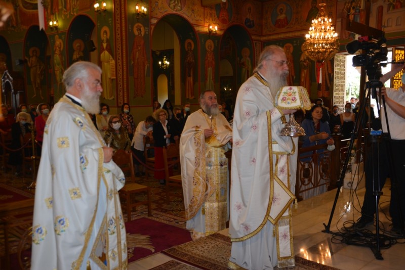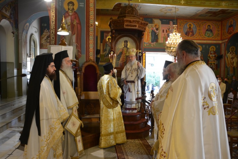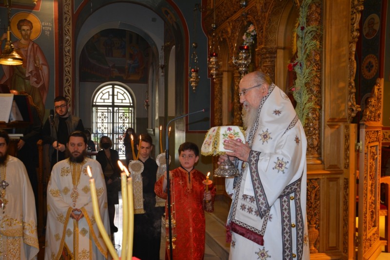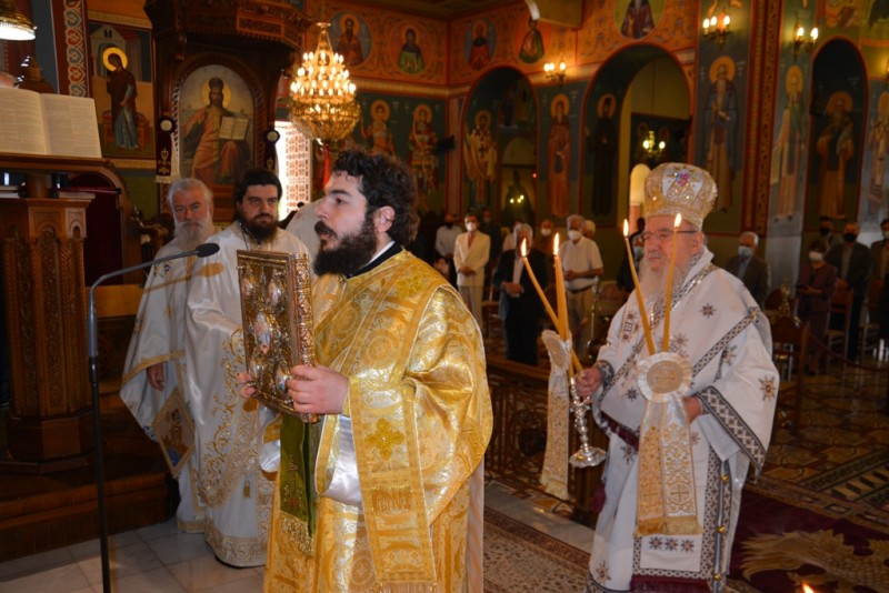 Το πρωί της Κυριακής τελέσθηκαν η ακολουθία του Όρθρου και η αρχιερατική Θεία Λειτουργία, προεξάρχοντος του οικείου Ιεράρχου Σεβασμ. Μητροπολίτου κ. Κοσμά.