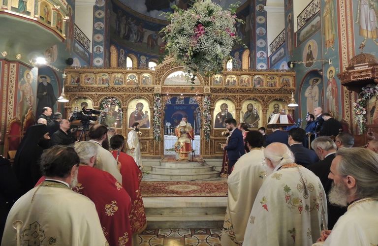 Στην ακολουθία του Όρθρου και την τρισαρχιερατική Θεία Λειτουργία, που τελέσθηκαν στον νέο Ιερό Ναό του Αγίου Χριστοφόρου, προεξήρχε ο Μητροπολίτης Δημητριάδος και Αλμυρού κ. Ιγνάτιος, ενώ συλλειτούργησαν οι Μητροπολίτες Πολυανής και Κιλκισίου κ. Βαρθολομαίος και Αιτωλίας και Ακαρνανίας κ. Δαμασκηνός.